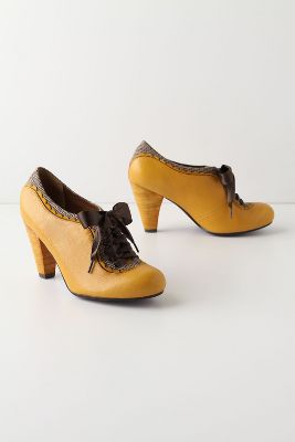 "Wooly menswear tweed successfully woos dainty scallops, sunny yellow leather and ribbon ties"